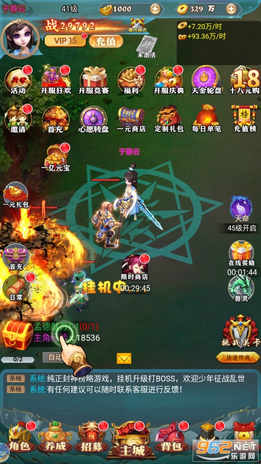 【特色一:挂机就送】爆款挂机类三国放置类手游,挂机就送神将,经验,元宝等大量奖励。