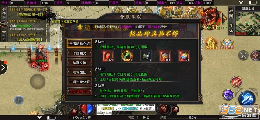 2、参与日常的活动副本赢取超丰厚的奖励元宝,各种熟悉的战役等你亲自体验;
