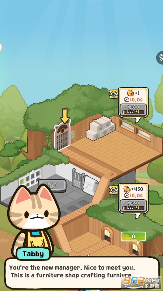 猫咪家具大亨中的主角是这只小猫,你要不断的升级自己的店铺;