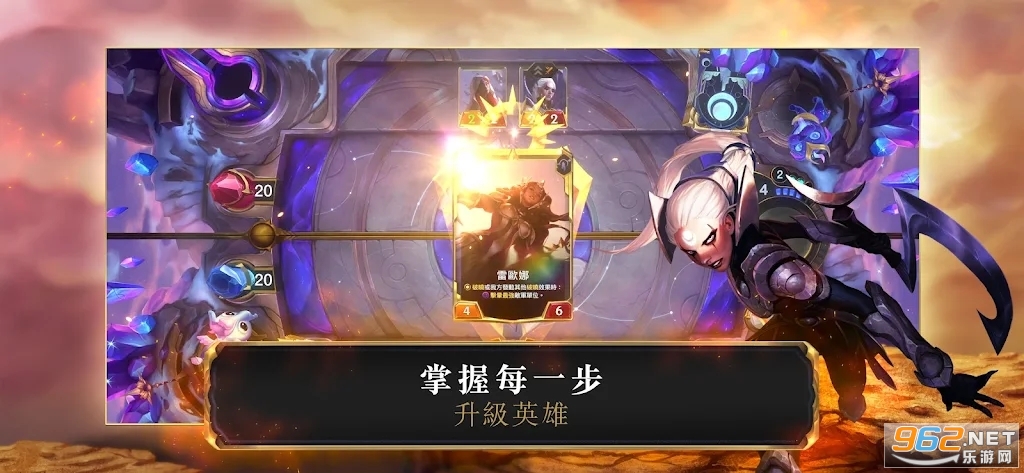 3、从24张英雄卡牌中精挑细选每位英雄都身具独特的属性机制,而且技能皆由英雄联盟本传中变化而来;