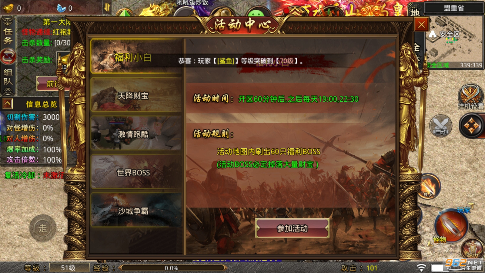 3、探索、PK、打BOSS、无忧挂机等应有尽有!!!