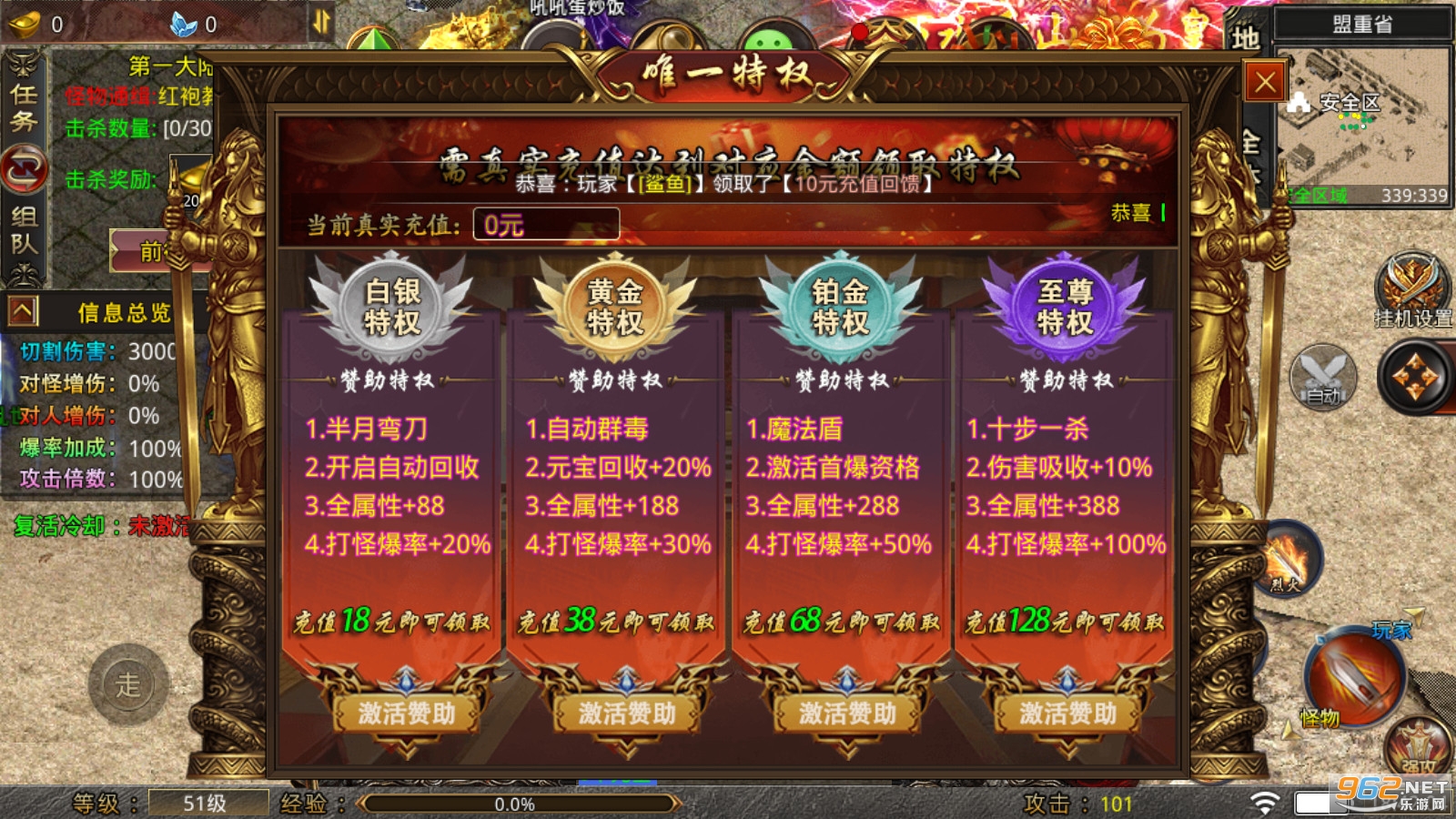 3、海量专属装备,无任何隐藏消费和暗坑地图.回归传奇本色,装备一切靠打!
