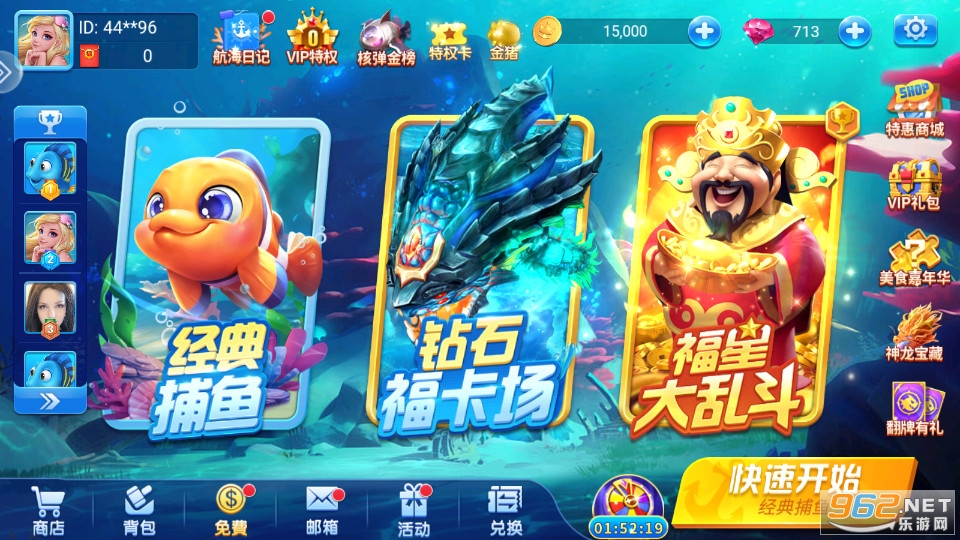 好玩的捕鱼游戏,朋友们在玩耍的过程中还可以兑换各种福利,比如话费、会员等,玩家可以前往钻石福卡场去收集福卡来兑换奖励,福利多多。