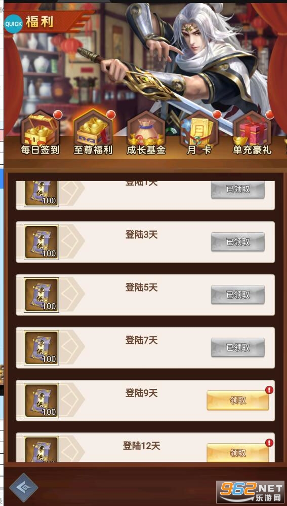 ★福利设置:上线赠送500寻侠券,SVIP1,全侠客宝箱,88万元宝,8888万铜钱,签到每日领百抽
