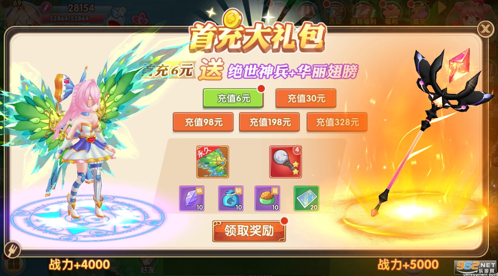 ★开局领取充值卡礼包!从6元到1000元的充值免费开!