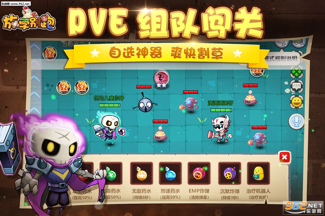 火力全开的全能战士、能防御一切伤害的铁锤、无限回血光环的酋长、携带“混乱药剂”的炼金术师……诸多天赋异禀身怀绝技的英雄们还有10秒到达战场,他们将采用技能发出致命一击,准备接招吧!