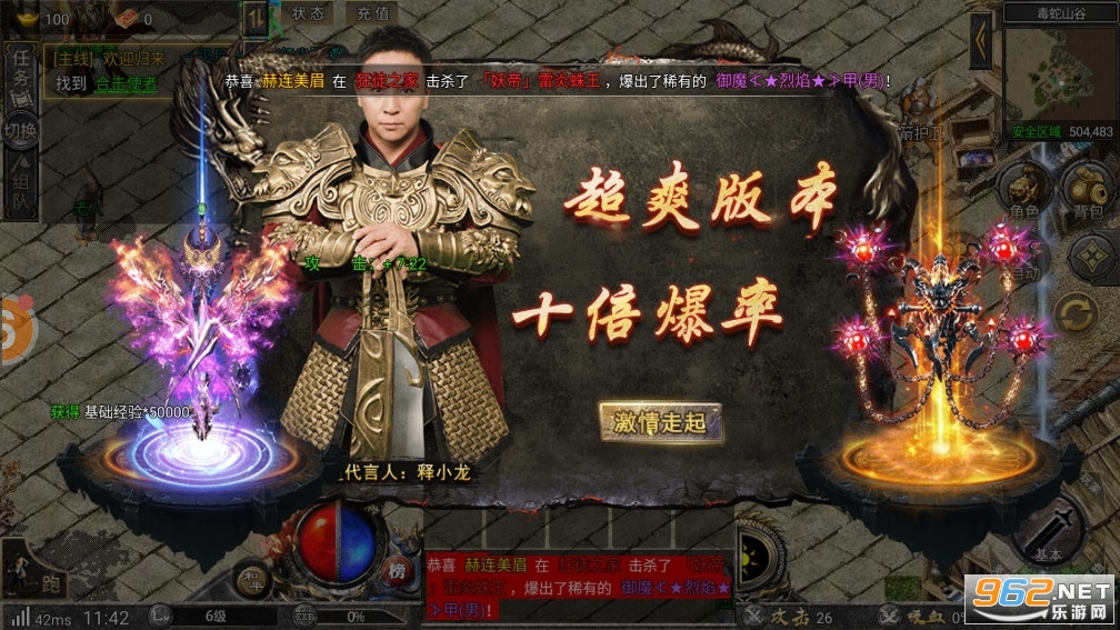 《释小龙狂暴传奇》是一款画面精致的由释小龙代言的三职业合击传奇手游,游戏中玩家可以选择战法道三职业去冒险,继承传奇经典玩法,自动挂机战斗,有着众多的boss可以挑战,可以招募英雄来觉醒各种合击技能,福利多多,十倍爆率,轻松体验。