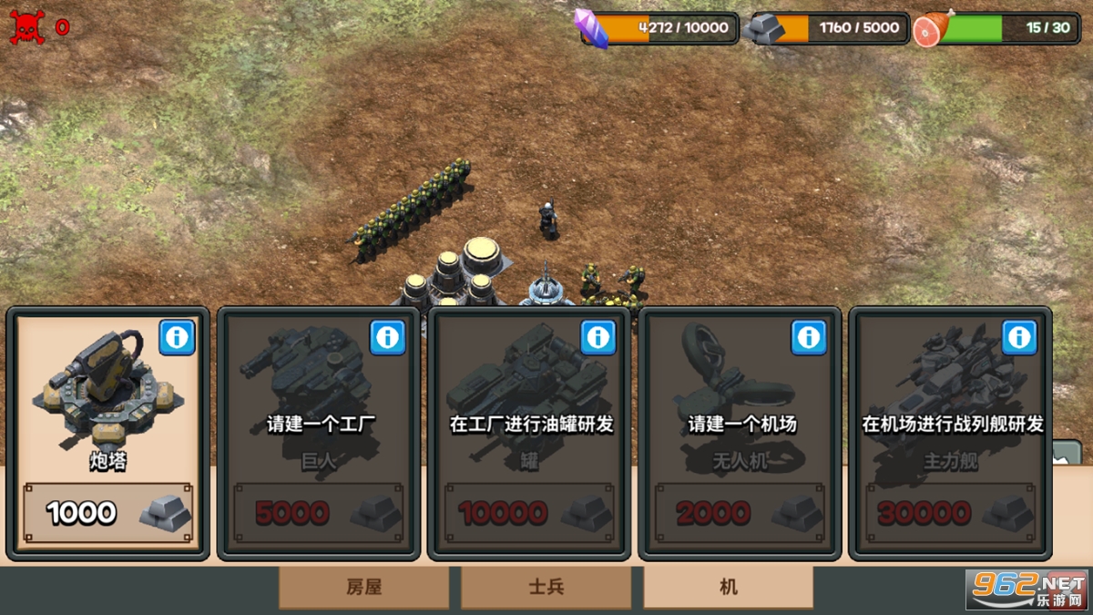 3.组合多种战斗武器,能量储存升级战斗力,训练大量的士兵,生物技术不断升级,建立防御基地;