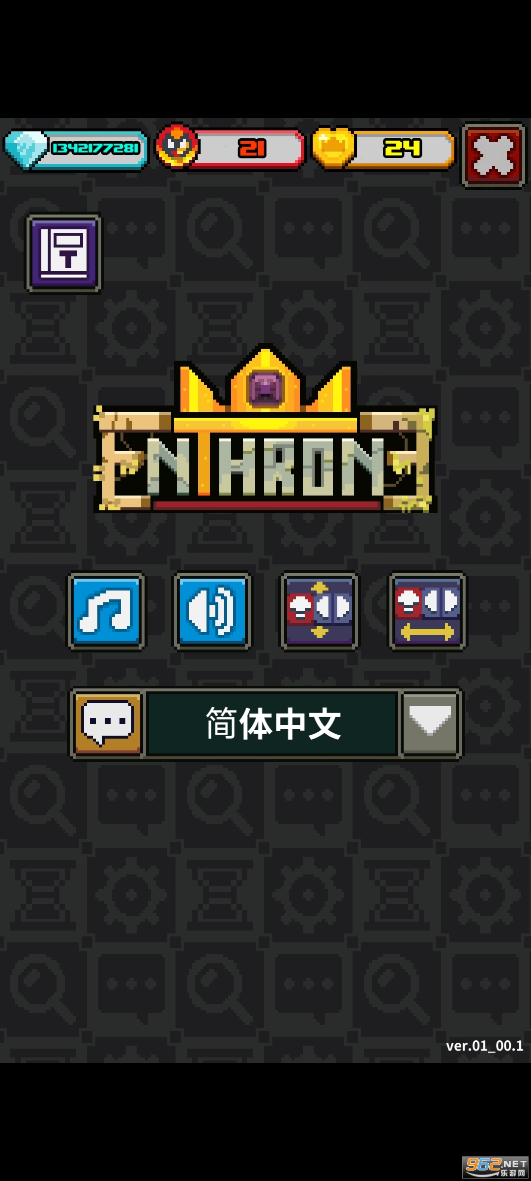 《登基Enthrone游戏中文版》通过教程以后可以在右上角齿轮设置中调整为简体中文,注意语言前三个是韩语英语和日语你需要向下拖一栏就能看到中文。游戏的玩法轻松有趣,感受有趣的肉鸽地牢冒险,成功登基为王。