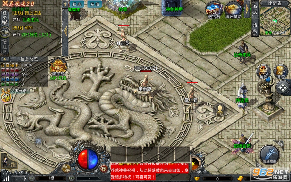 1、上线即可获取高等级的VIP使用权限,全地图任务地图一键传送爽快无比。