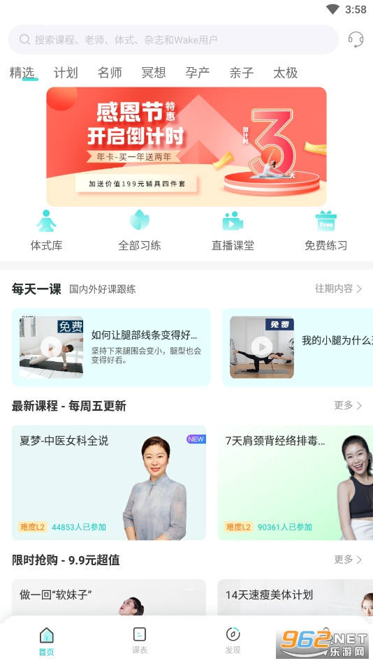 2.名师课坊:每周3节新课程,国内著名瑜伽教练实景录制,亲自讲解课程;