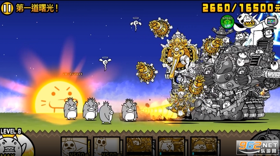 《猫咪大战争》是一款集合了策略和育成要素的简单易上手的小游戏。游戏分为诸多关卡,玩家率领一群暴走的恶心萌猫咪,将从九州通关各个关卡,目标是占领全日本。《猫咪大战争》玩家需要凑钱雇佣猫咪迎击敌人守护炮台,金钱会随时间递增,当蓄力到一定程度,炮台还能发出激光一炮把敌人轰杀至渣。
