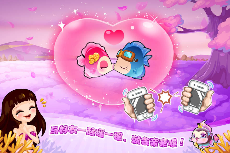 1、超有爱接吻鱼!跟好友碰一碰手机,鱼儿就能甜蜜亲亲喔;