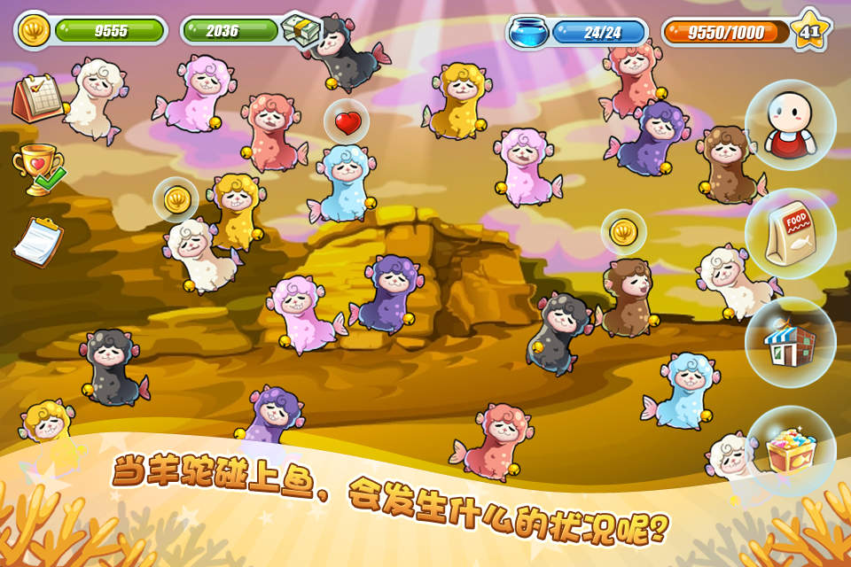 与同名PC版游戏一样,玩家可以尽情挑选喜欢的鱼鱼来饲养,进行买鱼、喂鱼、收宝、兑换、放生等一系列操作,还可以互相访问好友的鱼缸,帮助好友收宝。