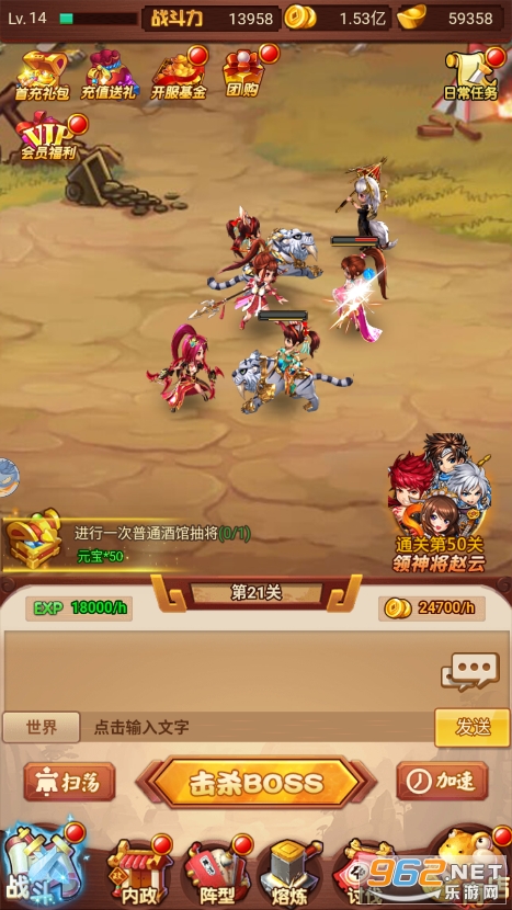 2、华丽阵容,超过150个三国名将可供免费招募,英勇无敌的关羽、足智多谋的诸葛、运筹帷幄的周瑜任您选择