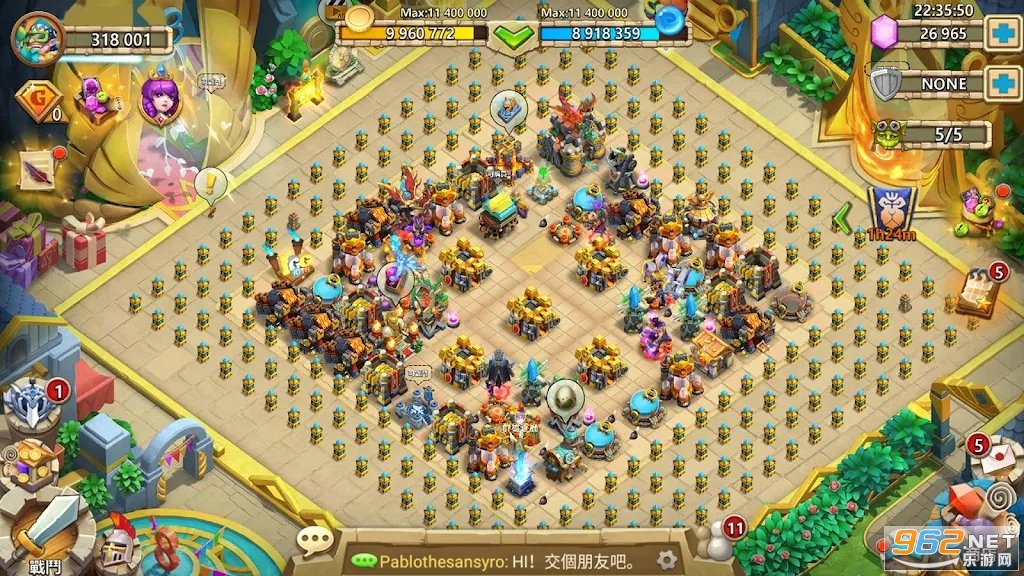 玩家可根据自己的喜好,对自己的城堡自由排布,打造自己独具个性又防御爆表的华丽城堡,成为众人膜拜的高富帅。赶快发挥自己的聪明才智打造自己的城堡吧,也许你的城堡阵型会变成众人模仿的攻略阵型!