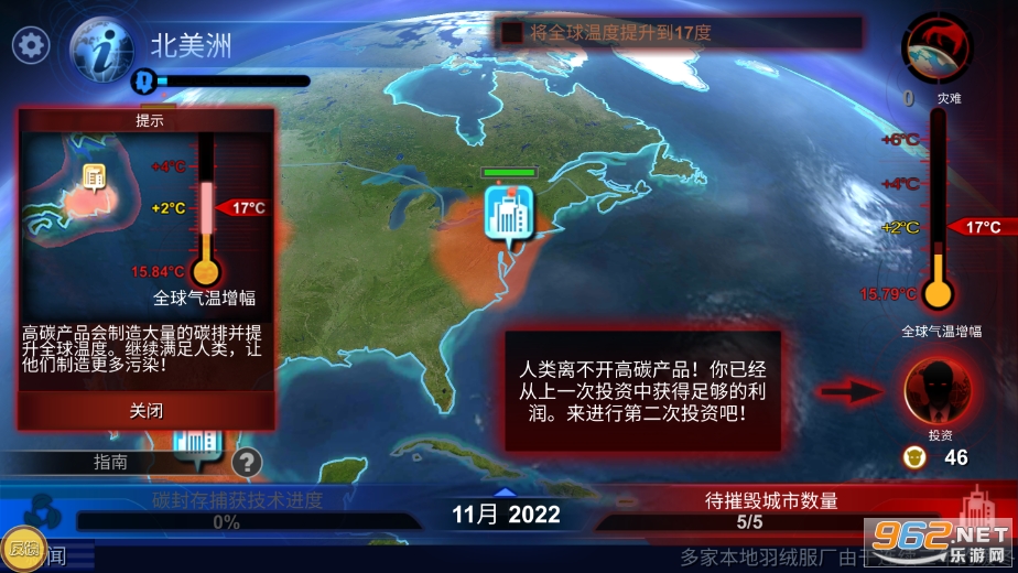 1、玩家在游戏中的任务就是提高二氧化碳的排量,加剧全球温室效应;