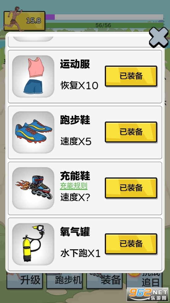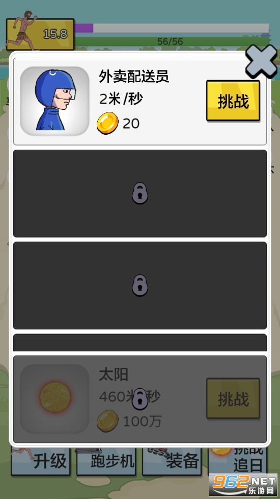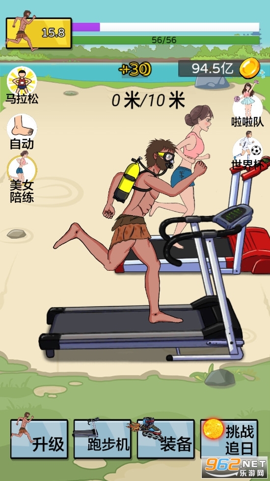 《夸父追日游戏正版》是一款抖音热门小游戏,采用了复古风的画面设计,加入了跑酷和放置的玩法元素,玩家在游戏中通过点击屏幕帮助夸父在跑步机上不断地奔跑,赚钱升级跑步机,装备等等,挑战追日,除此之外,还可以邀请啦啦队为你加油,加入美女陪练,参加马拉松,世界杯等等,玩法众多!