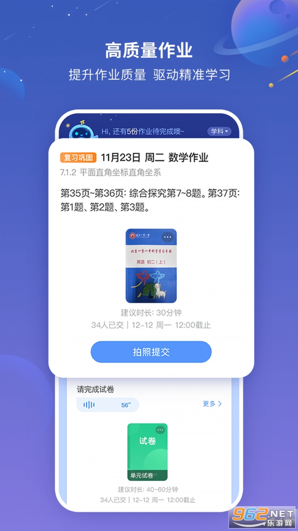 2、支持教师布置自主作业、标准化教辅作业、试卷作业;