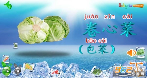 4、直接点击旁边的喇叭图案,就能够发出什么菜的正确读音,不用你在旁边陪同宝宝也能够自由学习。
