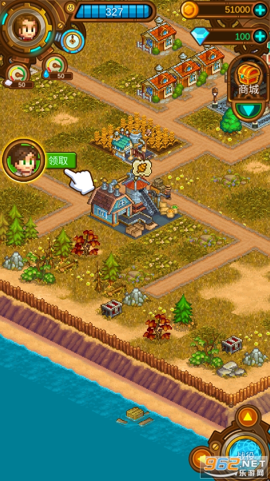 -基础设施:建造水塔,蒸汽机,仓库。最终升级您的城镇来建立大型蒸汽中心。