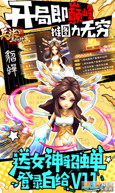 ★七日豪礼!次日直升VIP11,再送女神貂蝉+专属神兵,更有高额真充卡!