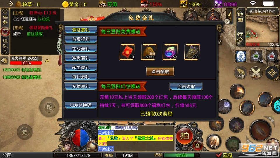 2、全新红包回收!完成任务和打怪可掉落红包,红包可激活充值!