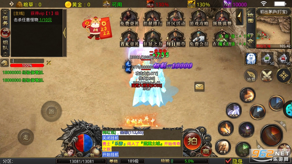 1、在全新的世界中自由冒险战斗,加入挂机模式,让角色升级更加轻松,开启挂机模式。
