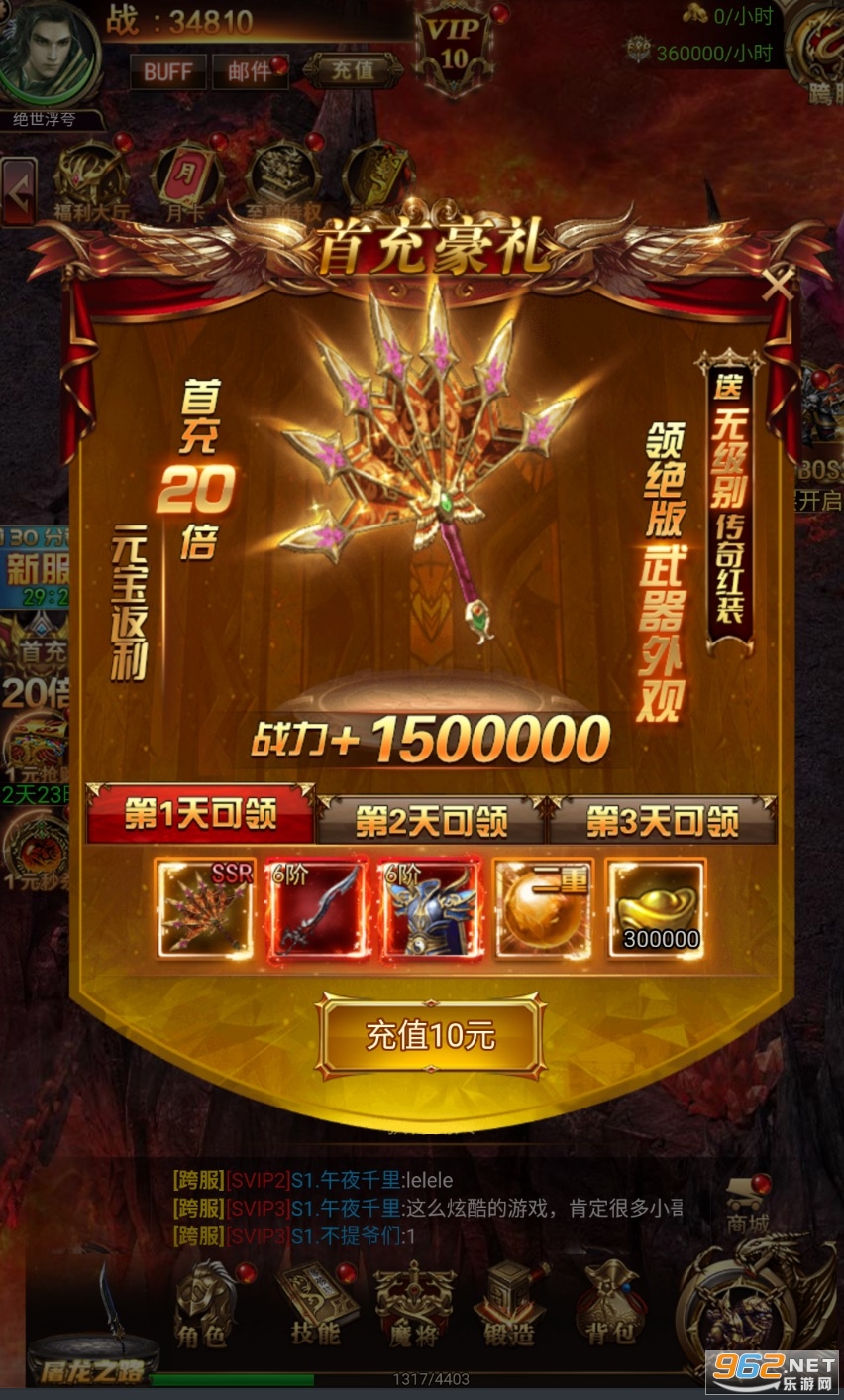 ★首冲最高20倍返利,功能特权开启统统送真充卡,元宝无限送!