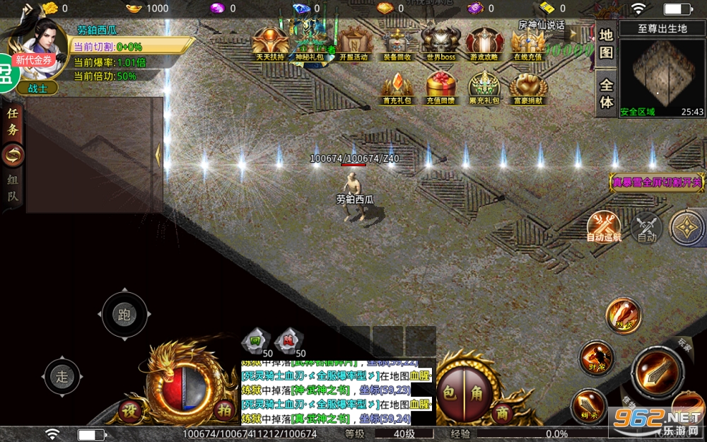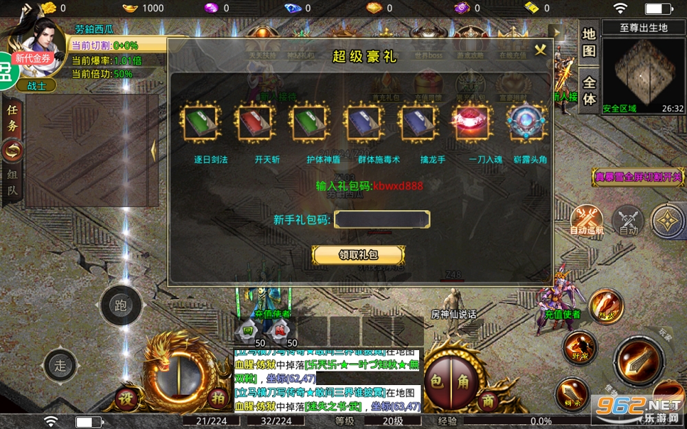 1、创角福利:上线送全套终极技能★全屏捡取★自动挂机★炫酷神器!