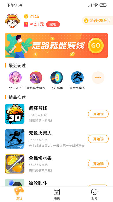 2、利用2144小游戏在线玩游戏还能赚红包,支持一键提现;
