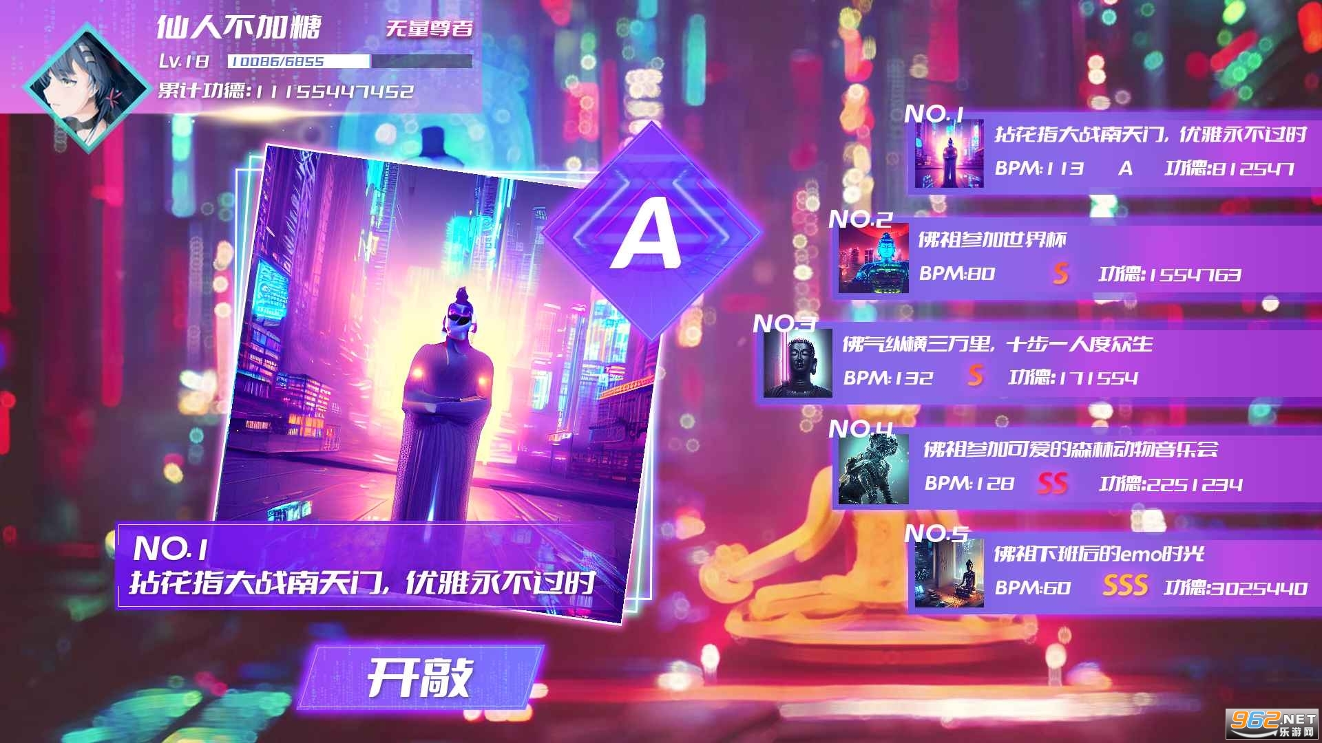 《节奏木鱼》是一款节奏类音乐游戏(积德游戏),由4种音符组成的有轨但你看不见的谱面组成,搭配空灵的木鱼给您带来不一样的积德体验!