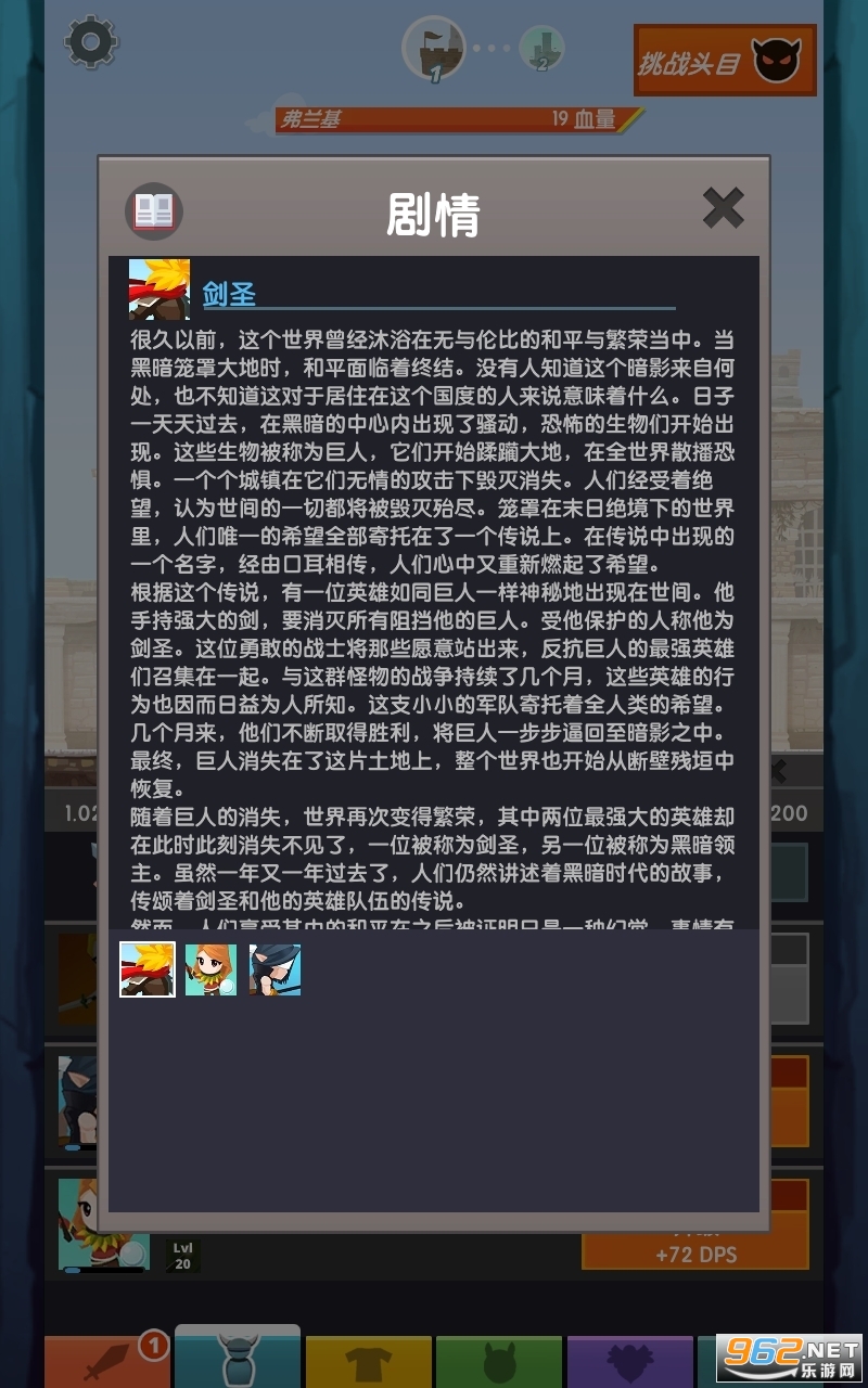 作为剑圣来防卫世界的战斗还在持续,但是更多全新的更加危险的巨人们也出现了。你需要用各种方式来增强剑圣的力量来克服巨人们也随之不断加强的力量。解锁强大的技能,收集传奇神器,升级忠实的宠物来为你而战,并雇佣各路英雄组队交战。与其他玩家角逐全球锦标赛来展示你的力量并获得精美的礼品。成立战队并加入势力来打败神圣巨人霸主。收集全新的装备并自定义你的英雄外观和力量来贴合你的游戏风格。巨人们现在回归了,那么现在就拿起你的剑,并开始全新的旅途吧!