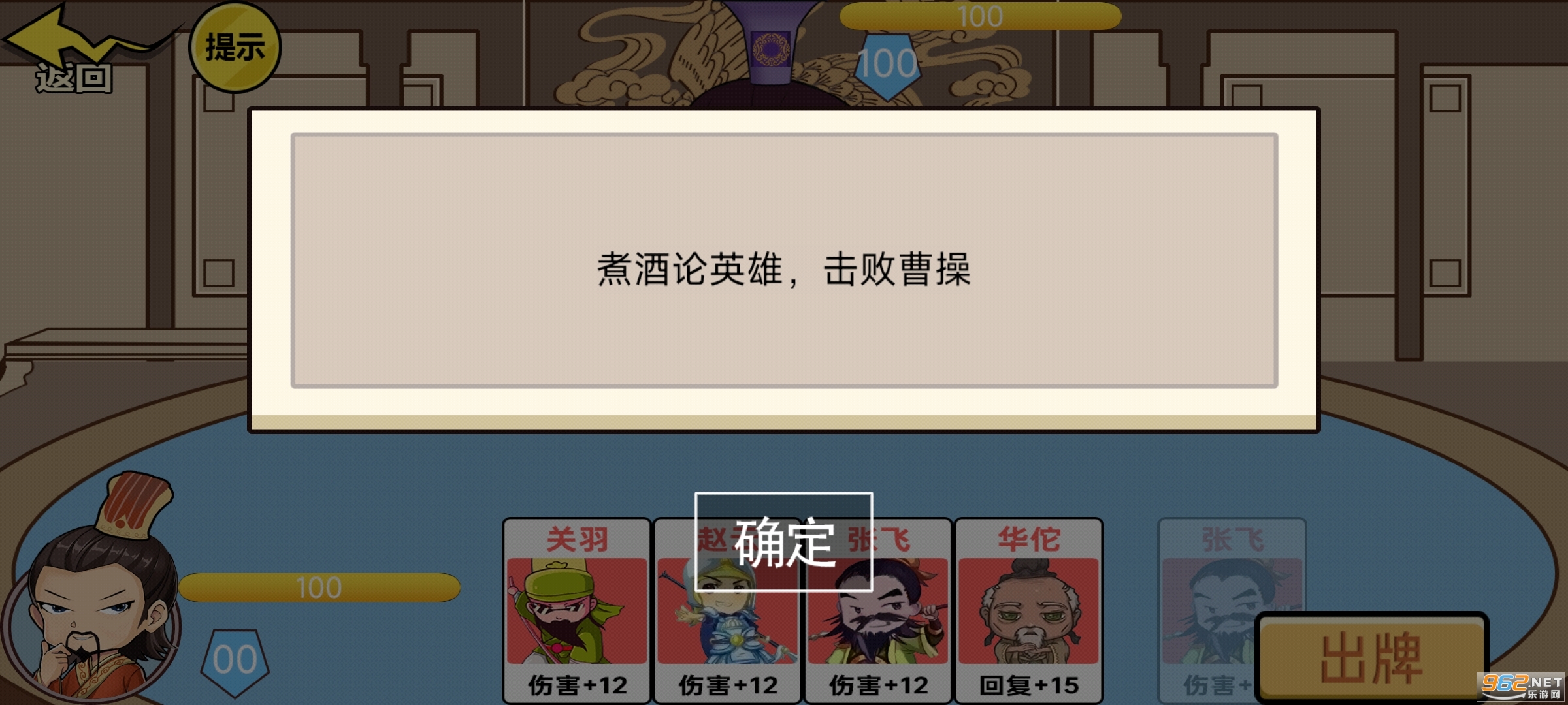 《狂战三国小游戏》一款有趣的休闲益智三国小游戏,在这款游戏中玩家可以通过出牌的方式击败曹操,不同的卡牌有着不同的组合方式,形成不同的效果,游戏的玩法轻松有趣,还有着多样的挑战,赶快下载体验吧!