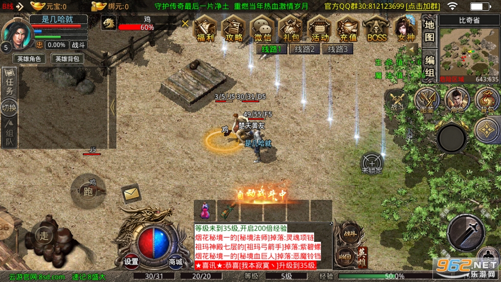 不同帮派之间,随时PK,畅享爽快战斗。跟随两大帮派,驱逐邪恶,创造属于自己的传奇!大量特色活动,散人打宝,组队混装备!不花钱!刺激爆装系统,只要有心就可以斗土豪分装备!