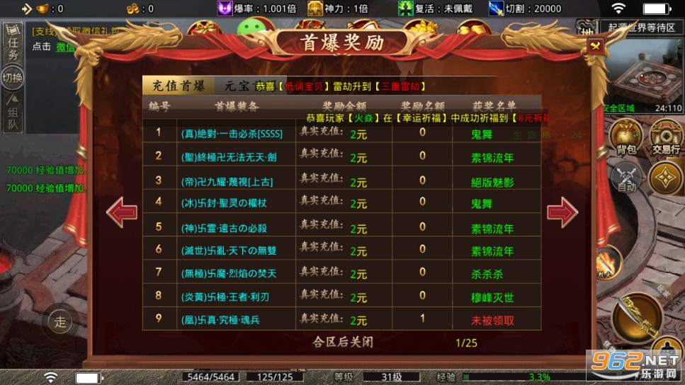 3、超高充值大量放送-首爆-跑酷-天降财宝-所有地图还有必爆充值boss