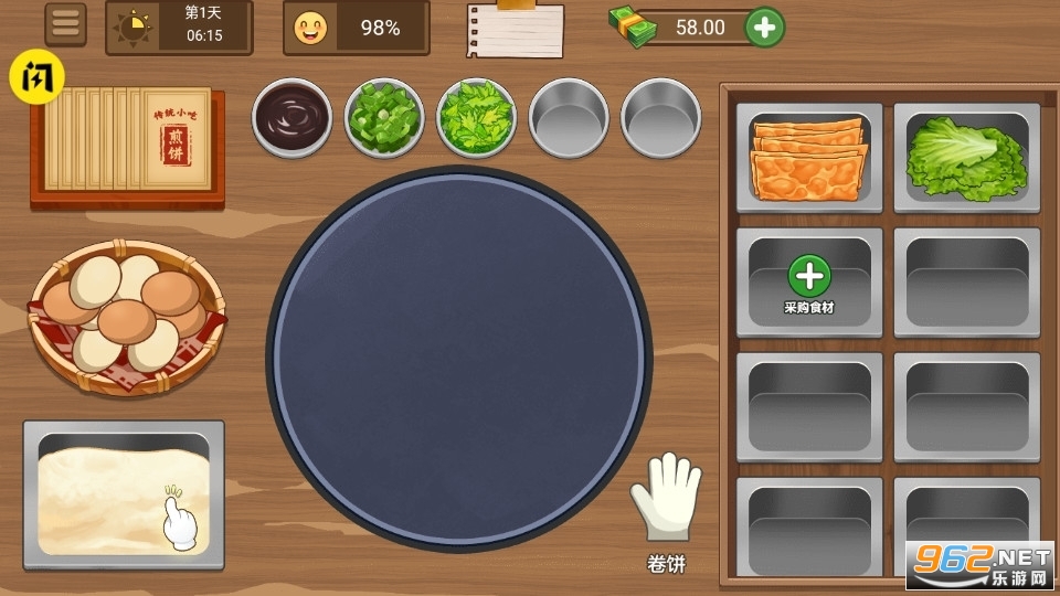 4、我的煎饼店游戏中掌握制作的技巧,在限定的时间内完成制作,不能让客人等太久;