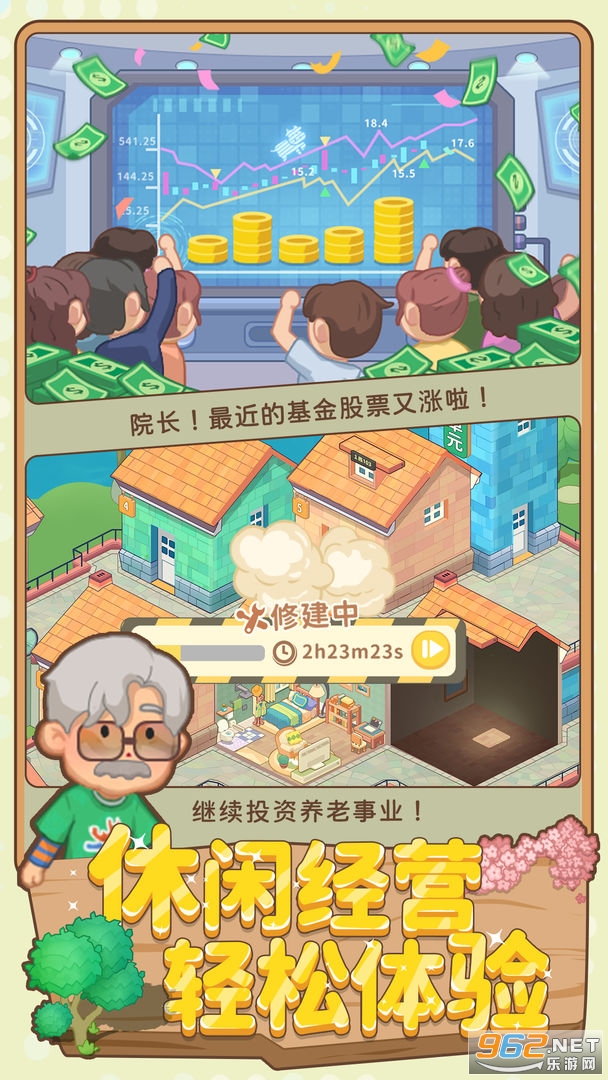 一款由房东模拟器制作公司推出的全新模拟经营游戏,游戏中玩家将经营养老院,迎接一个个住户,同时你需要根据需求来建设不同的设施,丰富退休以后的生活,推荐给喜欢模拟经营游戏的玩家。
