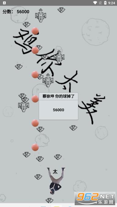 1. 飞船可以对蔡徐坤进行射击,被射到的外星人将会消失,当全部外星人被消灭后会自动生成一个新的外星人