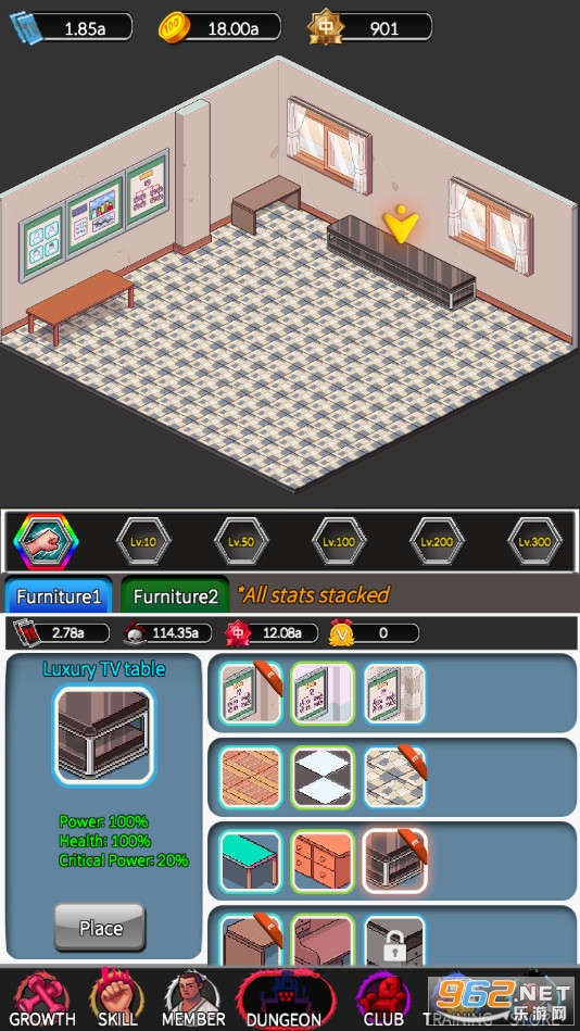 购买俱乐部客房物品,提高统计数据并装饰俱乐部客房