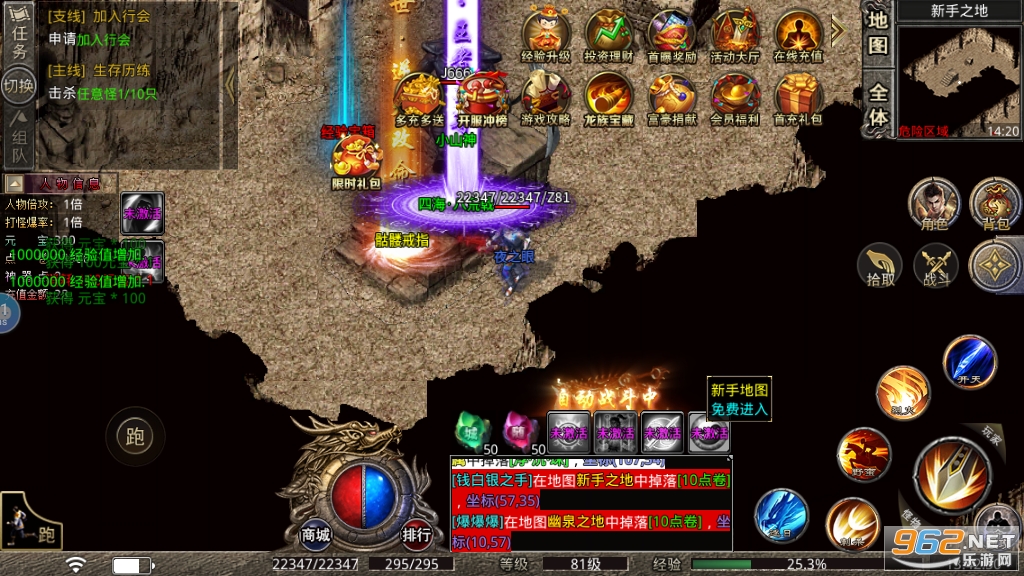 10.土城右上角处开启狂暴可大幅度提升属性,可获得专属洪荒神力称号。