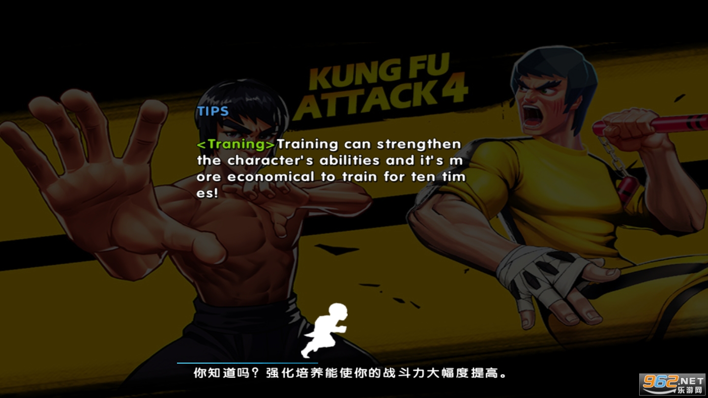 升级角色的生命值,拳法力量,踢法力量和武器技术,以击败更强的敌人。