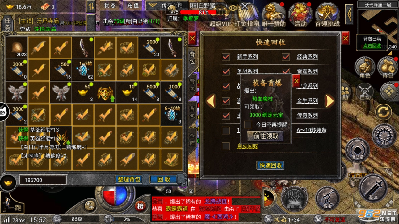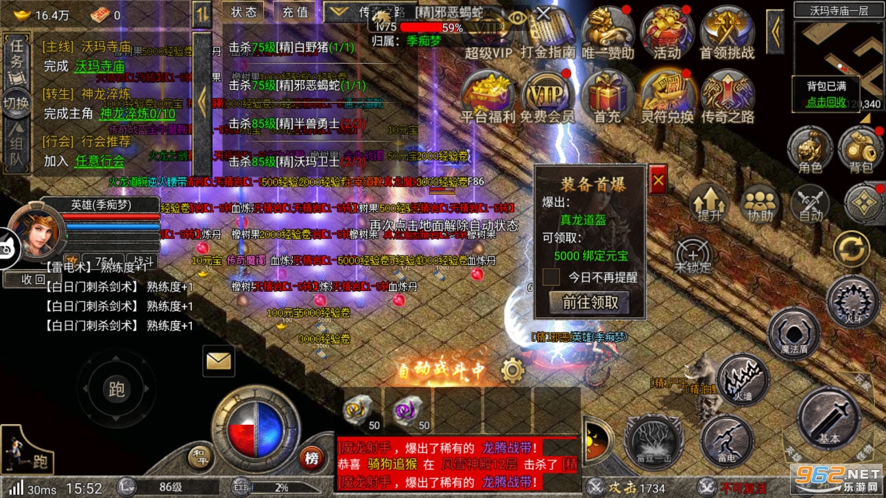 4、老传奇端口绝对保证零充值入口,全部装备只能靠手打,爆率还是很高的,玩起来很舒服