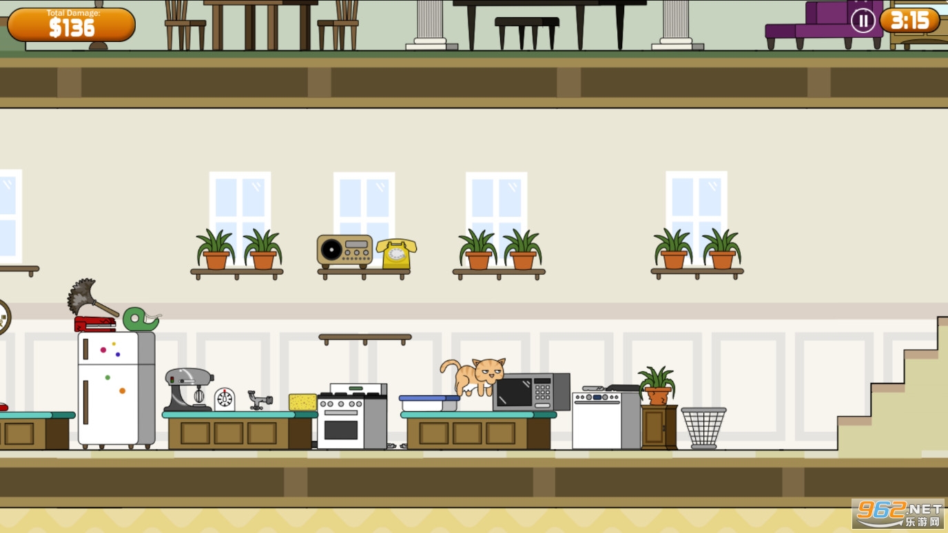 一款充满欢乐的拆家模拟游戏,在这款游戏中采用了横版的画面,你需要扮演猫咪来拆家,破坏各种各样的物品。解锁更多的地图场景,游戏的操作简单容易上手,尽情的破坏,推荐给喜欢解压游戏的玩家。