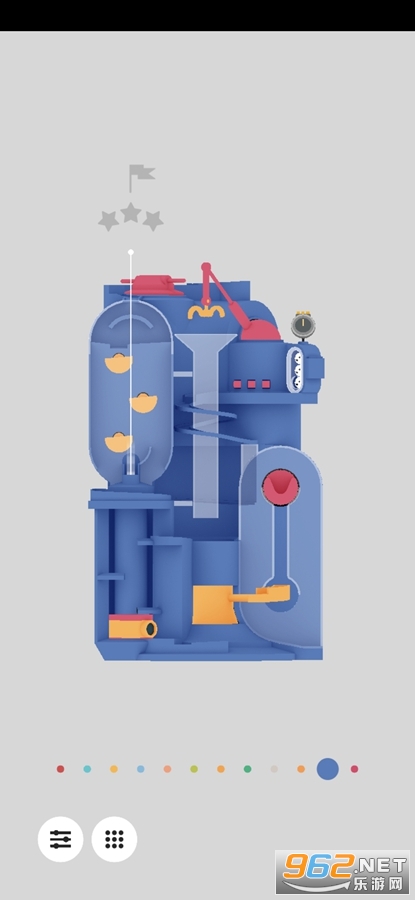 轻按、旋转、倾斜、拨动各种各样的装置,帮助每一颗小球蹦蹦跳跳到达胜利的终点。每一玩具都是一场特别的机械障碍赛。