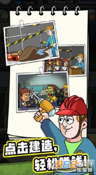 1、僵尸肆虐,末日降临,游戏中玩家只需动动小手指便可建造自己的避难所,抵御僵尸,经营赚钱。
