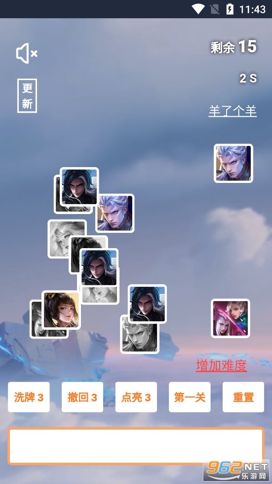 趣味的消除匹配游戏,和羊了个羊玩法类似,加入了王者荣耀各个英雄的头像,关卡也增加了多个,可以自由的调节难度,喜欢的朋友可以下载试试。