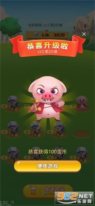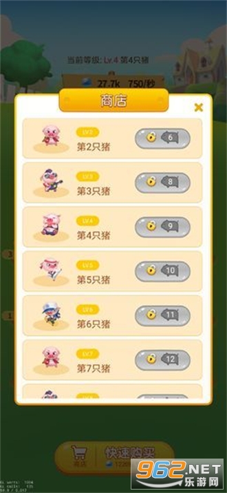 3.玩家通过不断的喂养小猪,提升它的等级,来获得更多的游戏金币,买更多不同的道具来帮助自己快速的完成游戏挑战。