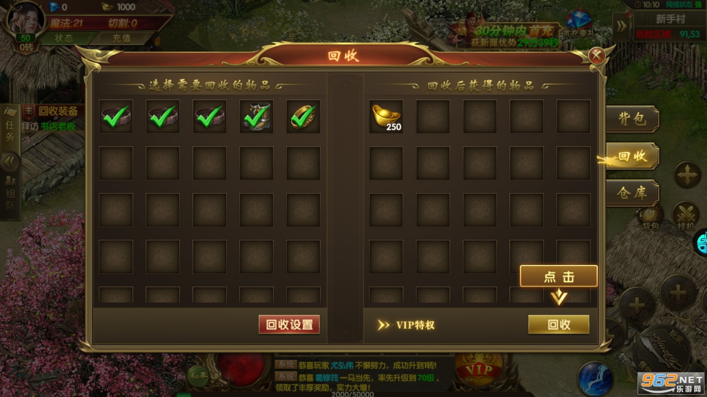 2、经典的三职业打金版本,给你带来海量的福利活动,完善的装备回收系统。