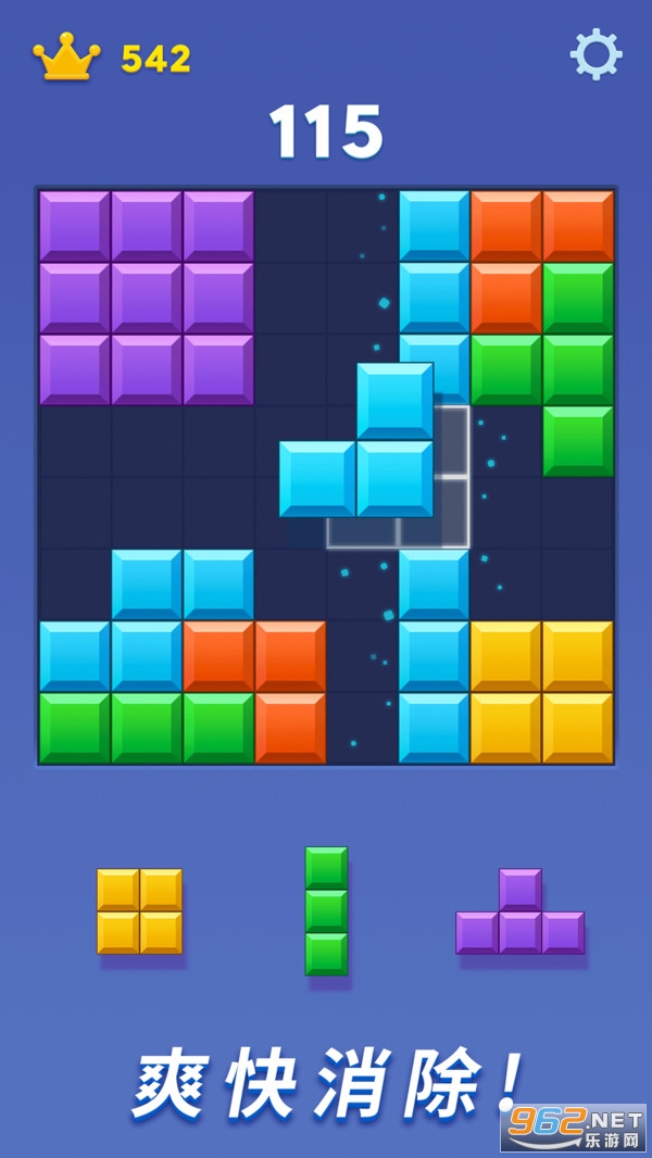快乐爱消除是一款类似俄罗斯方块的益智游戏,挑战在有限的空间消除尽可能多的方块以获得更高的得分。这也是一款操作简单但颇具挑战性的消除游戏,它有逻辑技巧和布局策略,每一步都决定了你能否获得高分。